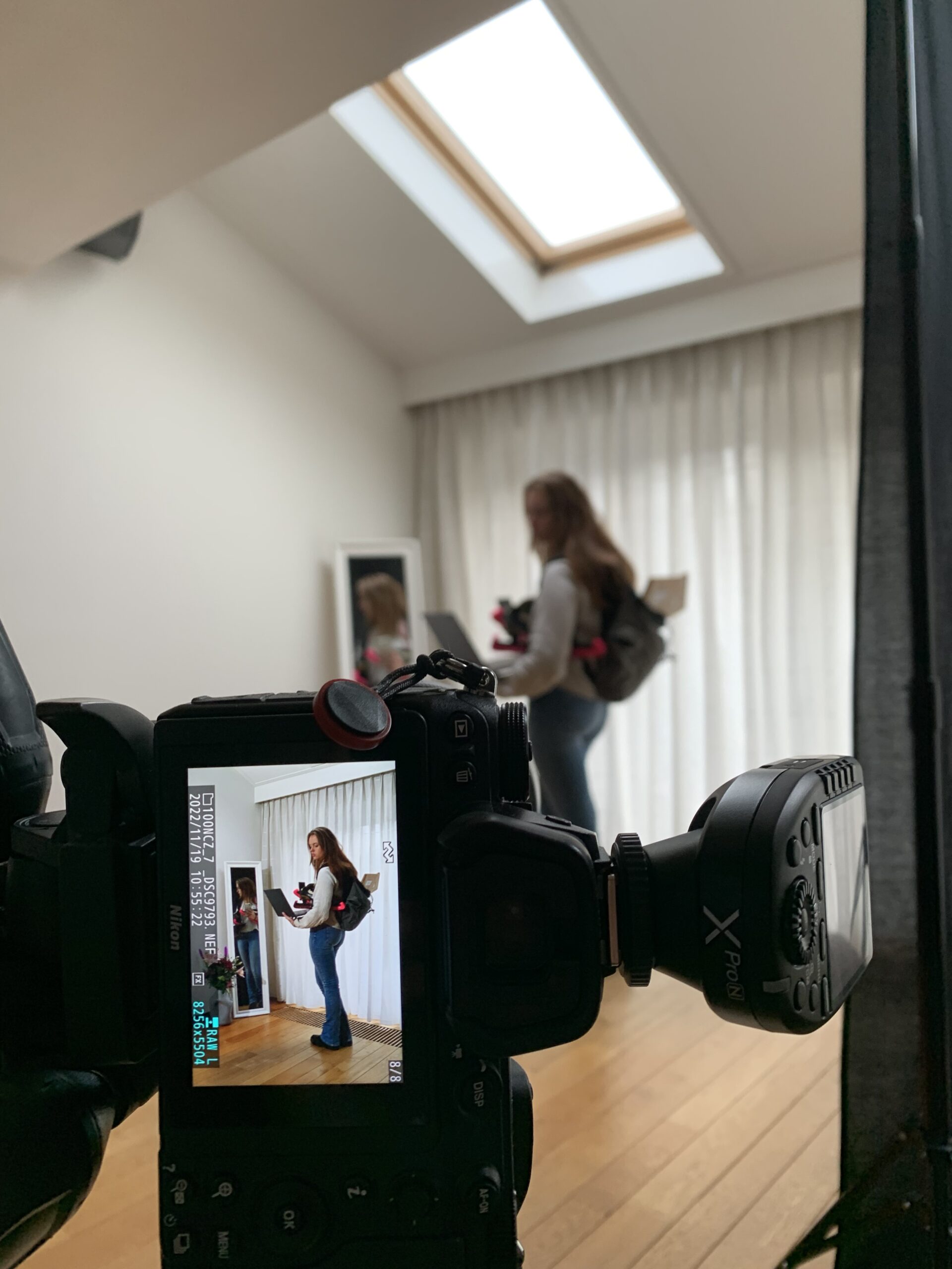 Voor deze fotoshoot gebruik gemaakt van drie flitsers. Een op de camera en twee verdeeld over de ruimte.