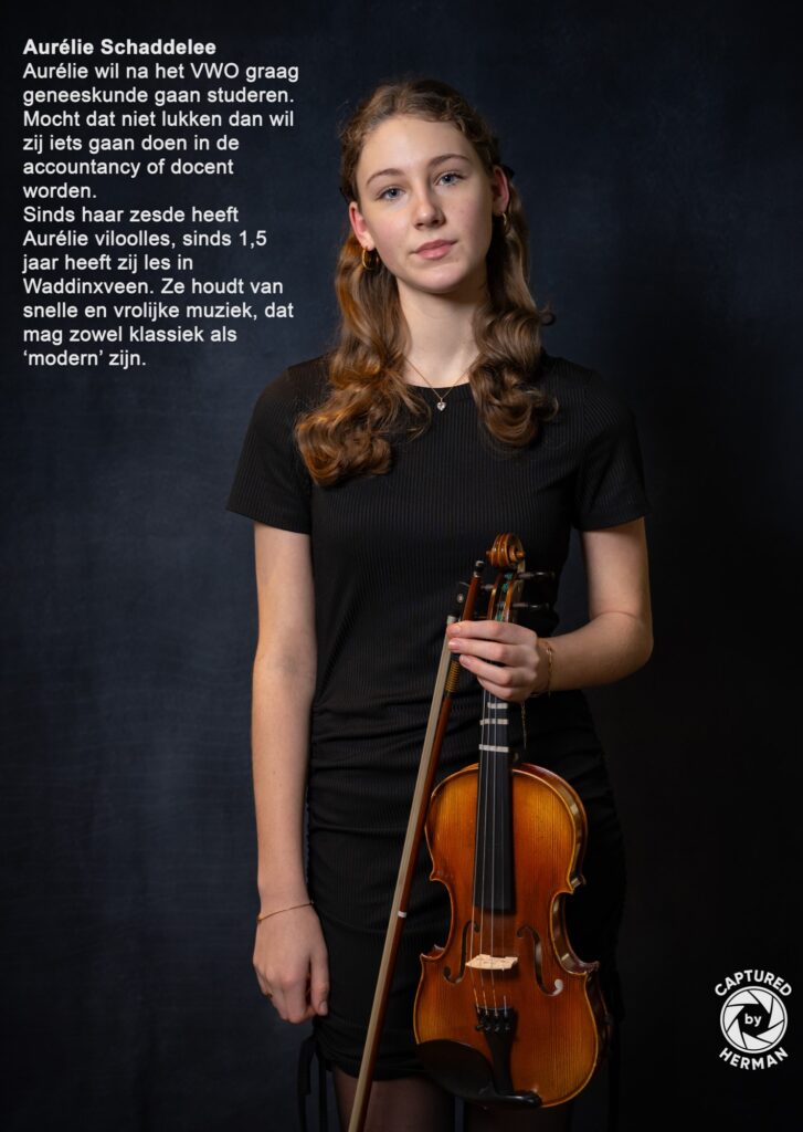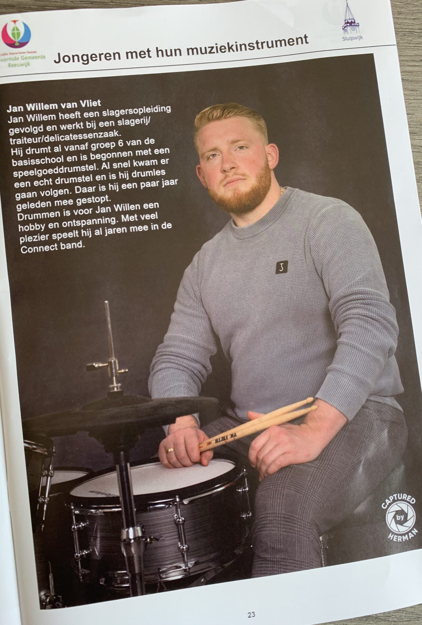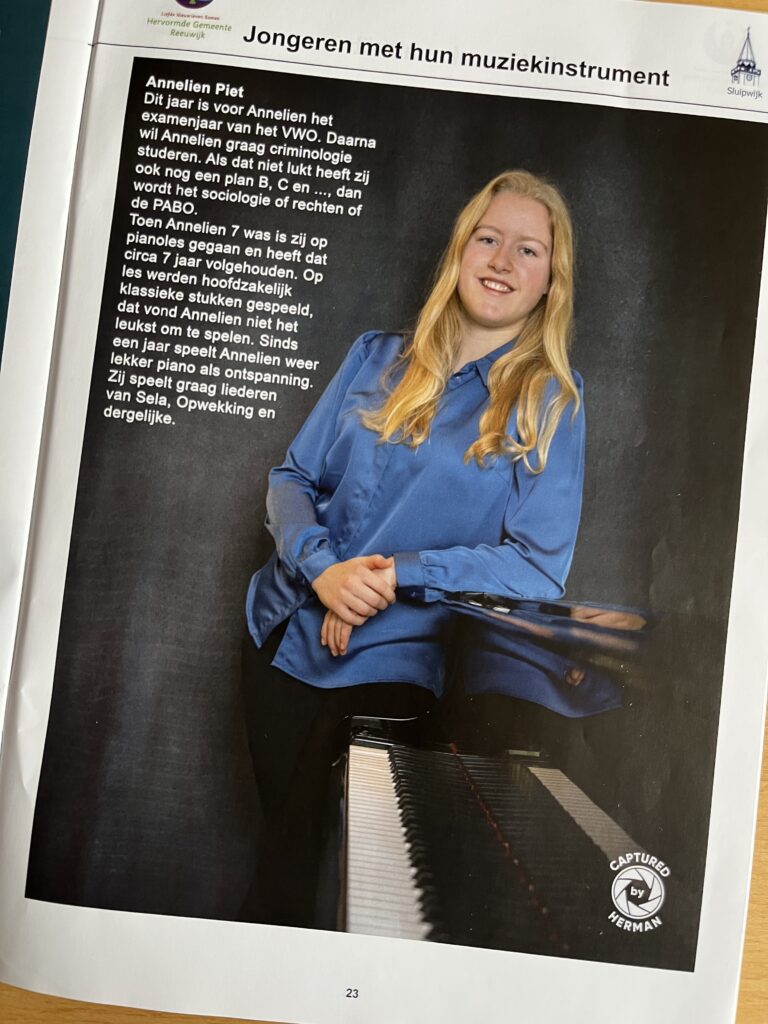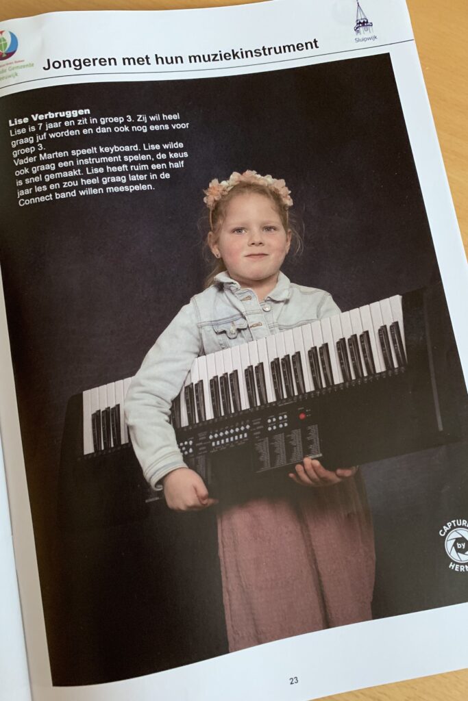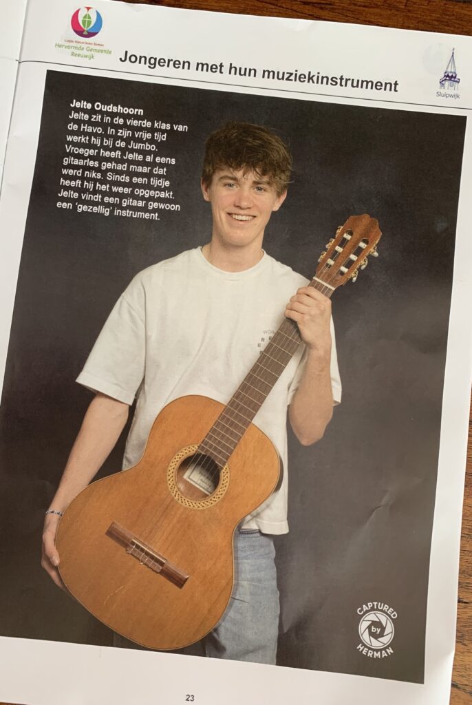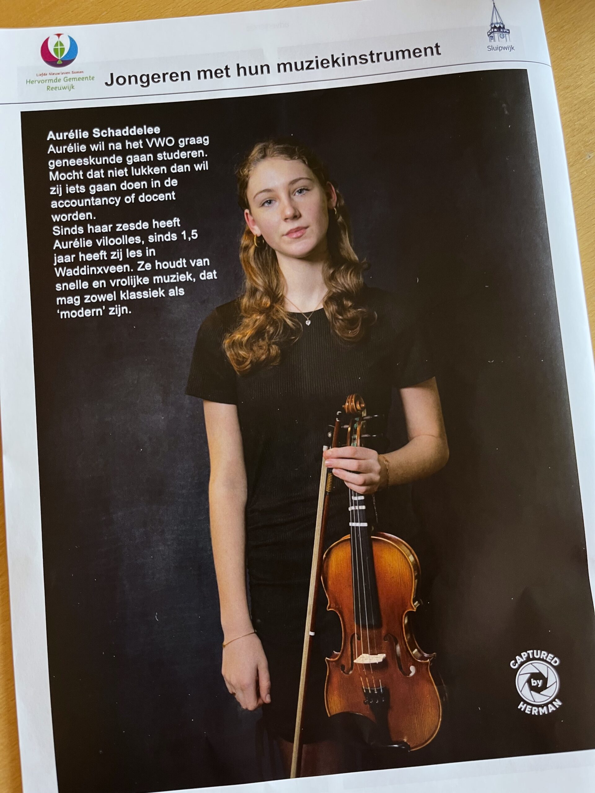 April 2024 ben ik gestart met een nieuwe serie ‘jongeren met hun muziekinstrument’. De serie is gepubliceerd in Kruispunt het maandblad van de Hervormde Gemeente te Reeuwijk, mei 2025 is het laatste portret.